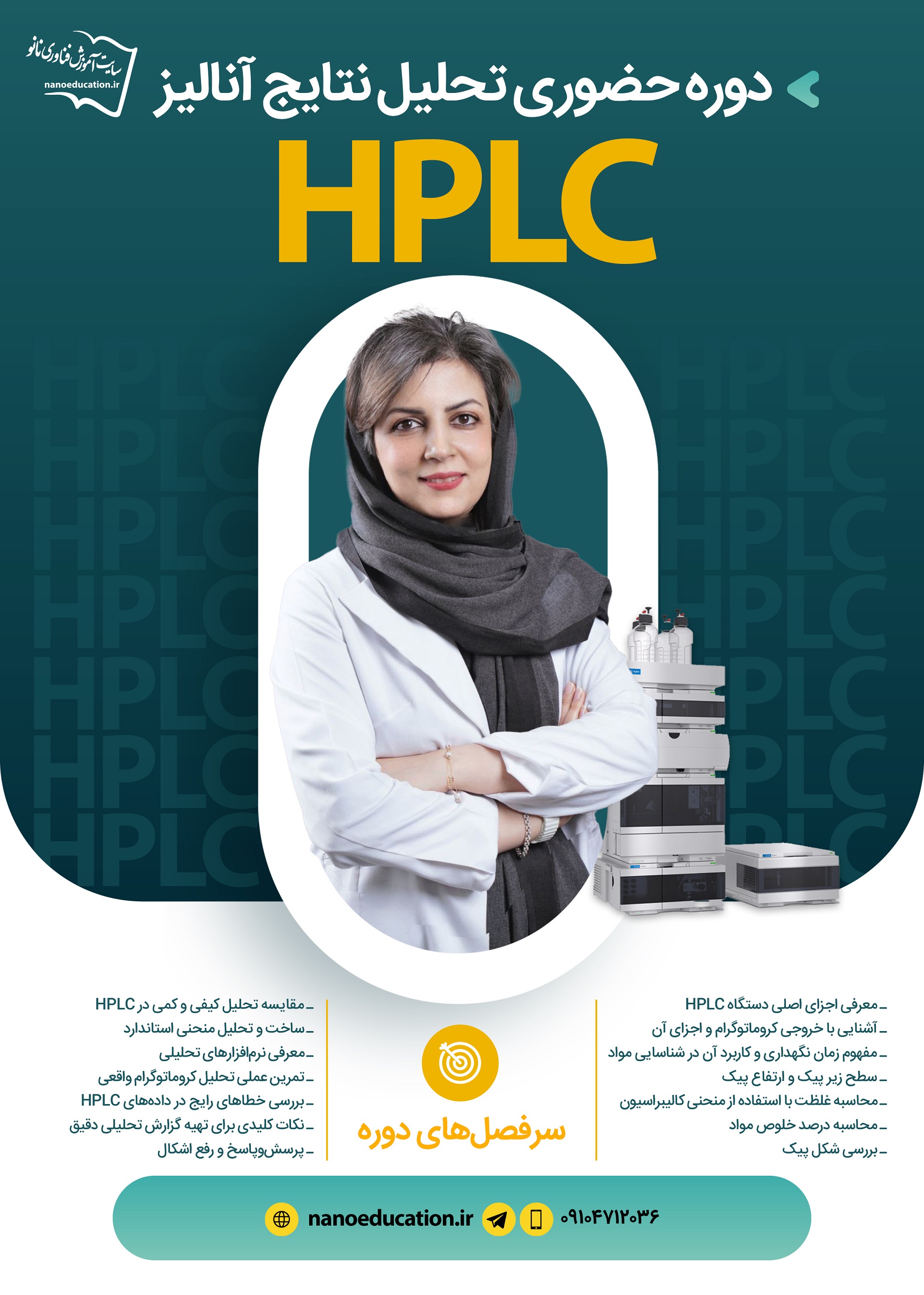 سایت آموزش فناوری نانو، دوره حضوری «تحلیل نتایج آنالیز HPLC - سری سوم» را با تدریس سرکار خانم دکتر الهام ابراهیمی برگزار میکند.